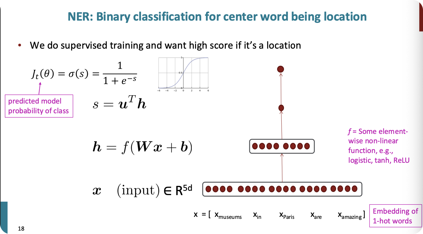 The word vectors x re-represent one-hot vectors, moving them around in an intermediate layer vector space, for easy classification with a (linear) softmax classifier
