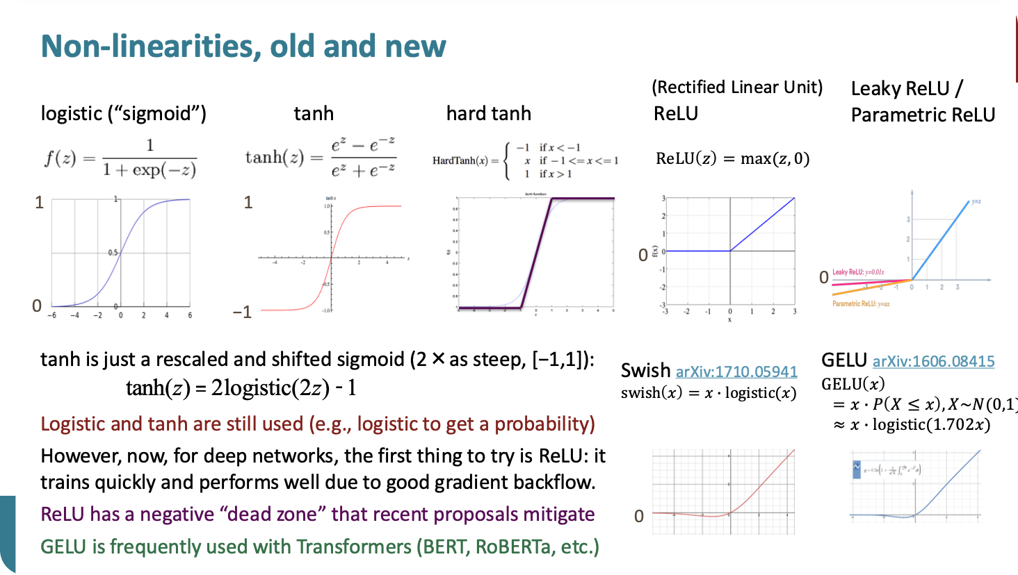 - logistic, tanh는 지금도 쓴다. 나머진 문제가 좀 있음