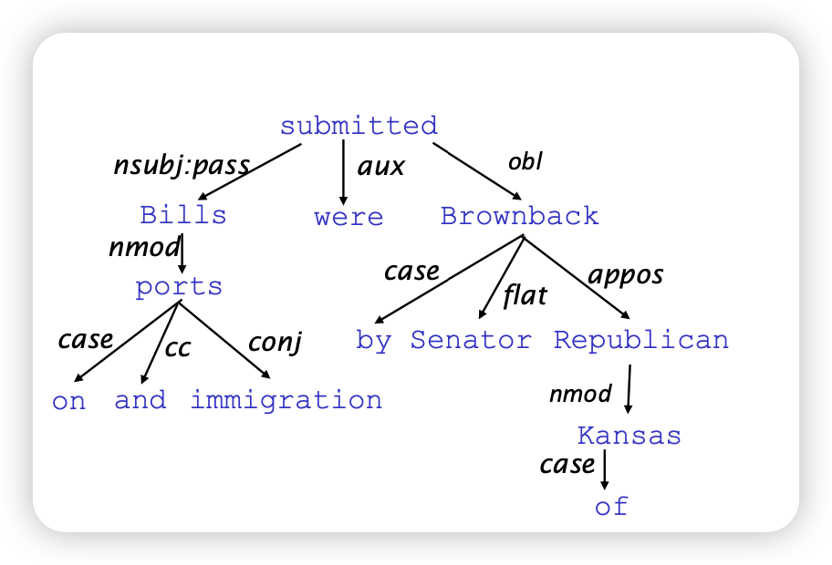 2. Dependency distance : 가까이에 있는 단어들이 관계가 있음
