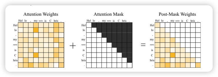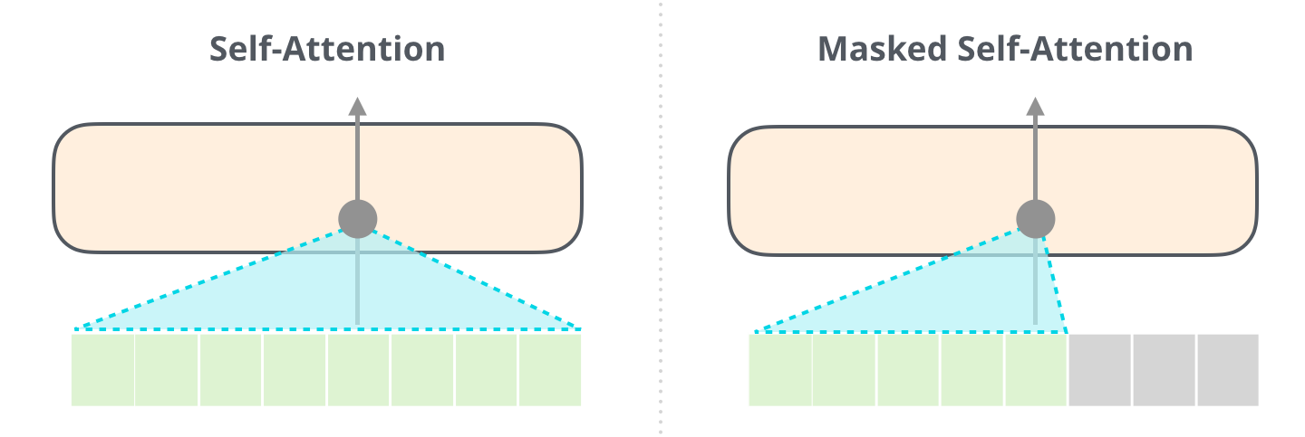 - 결국 각 토큰은 자기 자신과 이전 토큰들만 보면서 attention을 계산함
