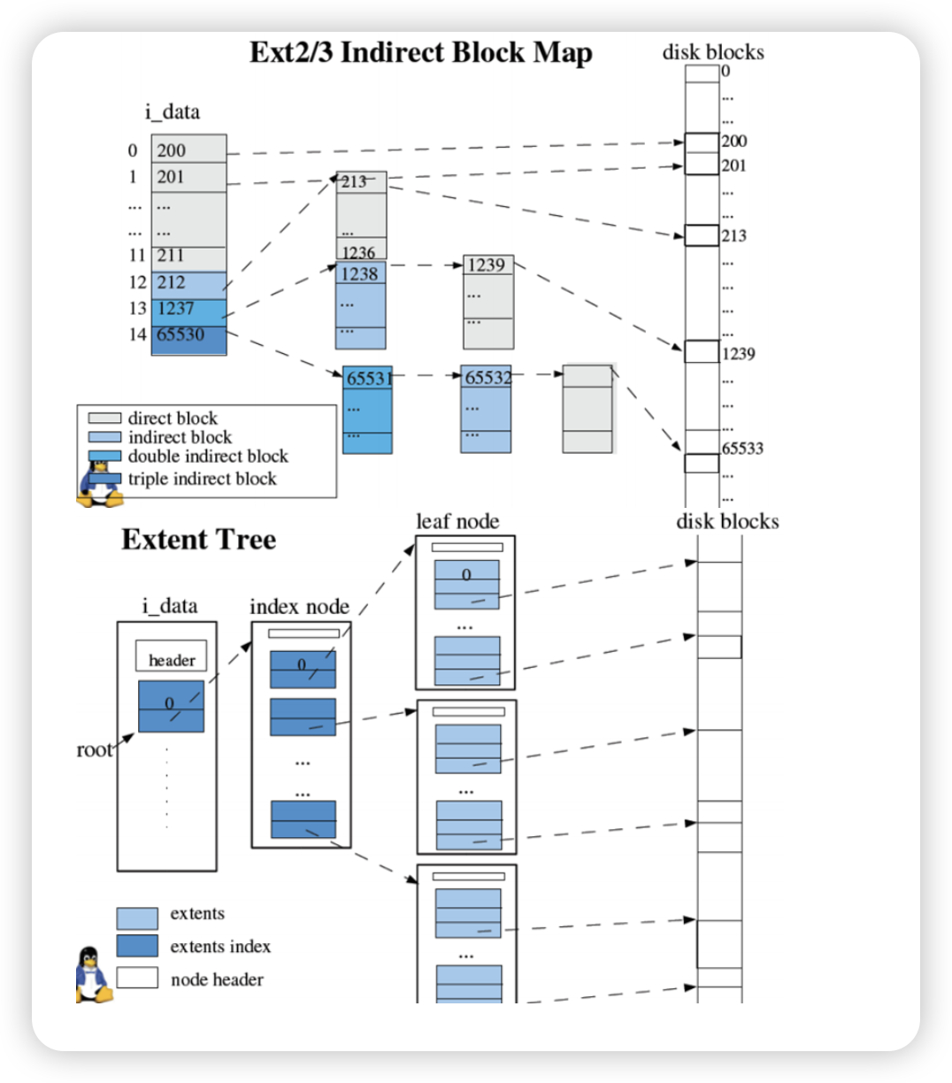 ext4는 ext3에서 migration을 지원하기에, extent 기능을 끄고 사용도 가능함. ext3에서 마이그레이션하는 경우 기존 indirect와 extent 둘 다 사용가능