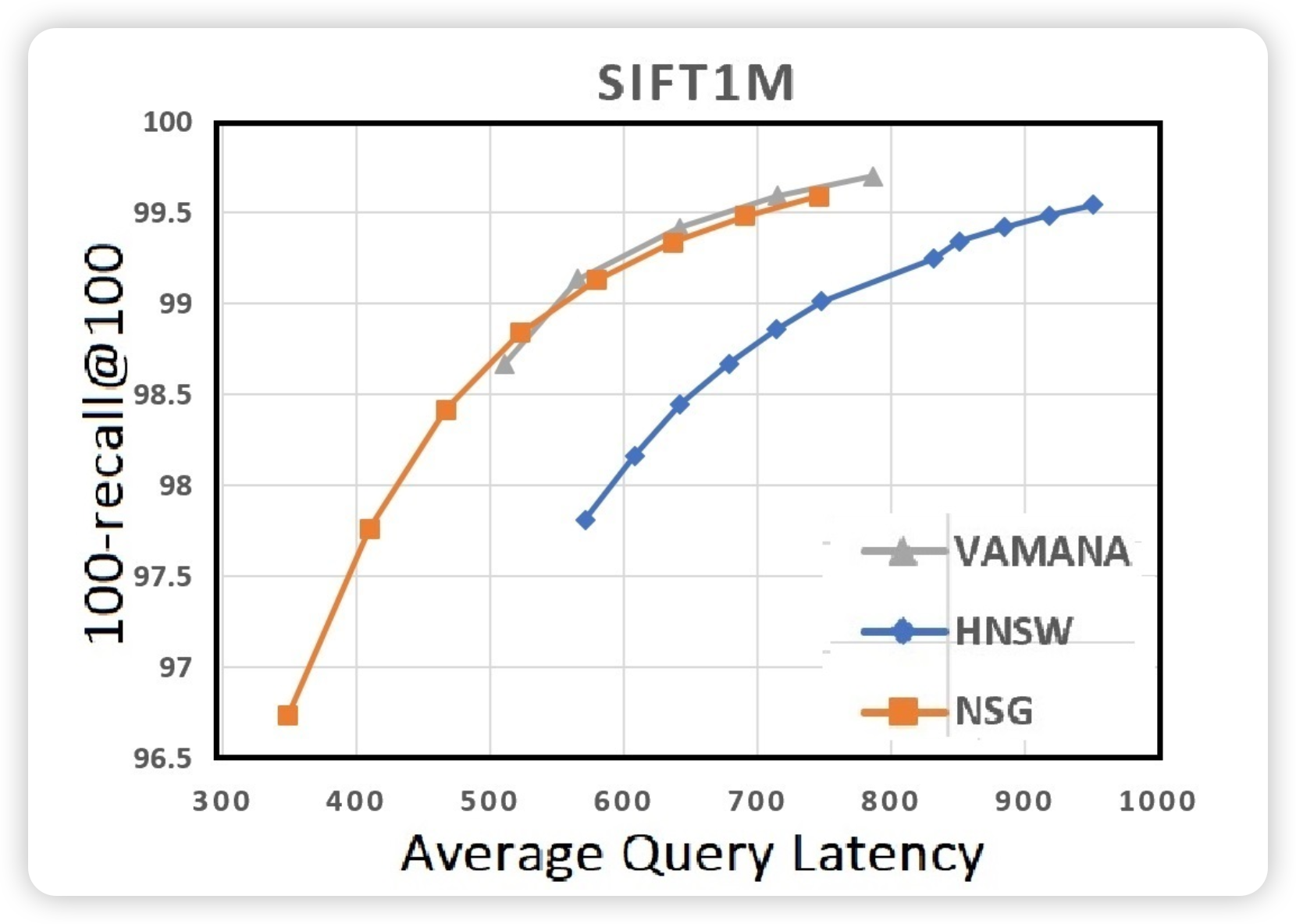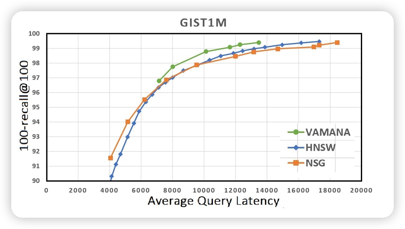 GIST1M | Vamana | ~99.2% | 6000~15000μs |
